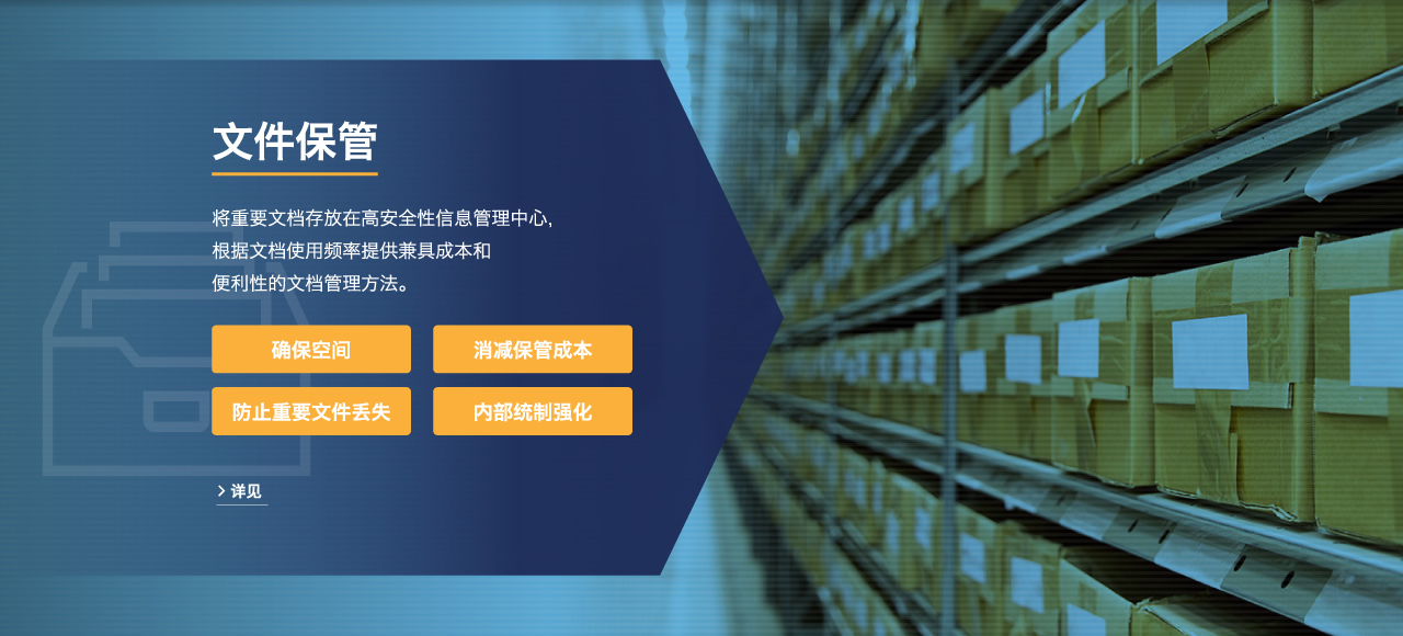 贵重文件存放在高安保的信息保管中心。 根据文档使用频率提供兼具成本和便利性的文档管理方法。